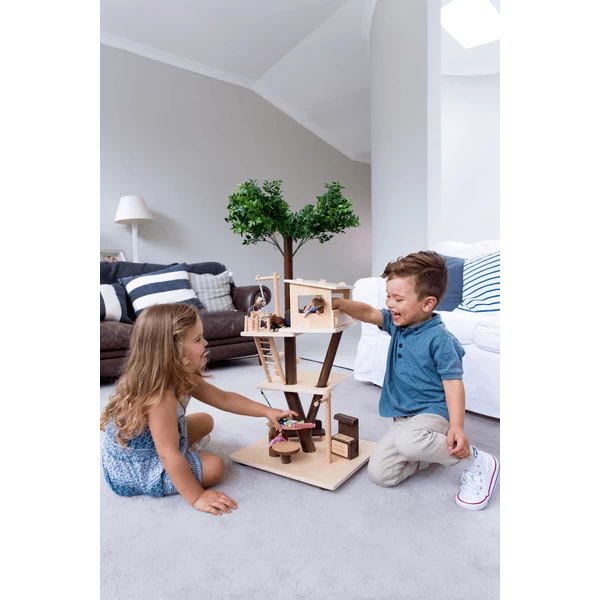 De boomhut van Ever Earth is een poppenhuis van een speciale soort. De drie verschillende verdiepingen bieden de kinderen vele mogelijkheden om avonturen te beleven met de bewoners van de boomhut. De hangmat, het katrolblok, de dummyboom en het meubilair maken het speelplezier van de kinderen nog realistischer. Met de boomhut kan uw kind talloze boomhutavonturen beleven, alleen of met vriendjes en vriendinnetjes.
