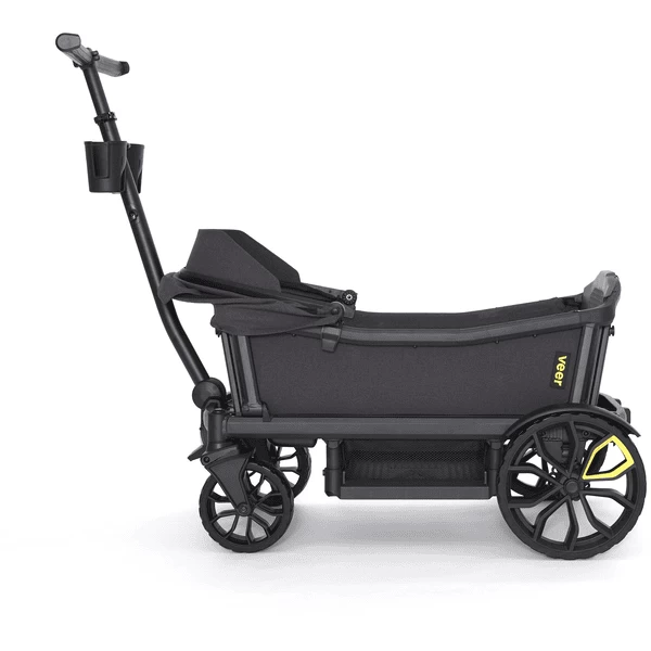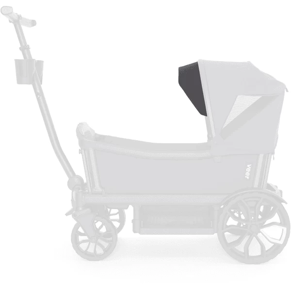 De Veerse zonneklep in combinatie met twee luifels biedt bijna volledige bescherming tegen de zon, terwijl de kleine passagiers toch uitzicht hebben op hun omgeving.